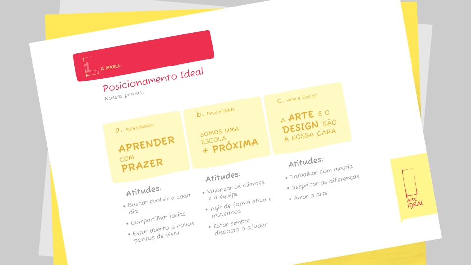 Após diversas reuniões, definimos junto à diretoria os principais direcionamentos estratégicos da marca, que manteriam a escola em posição de destaque no mercado e norteariam suas ações e atitudes.