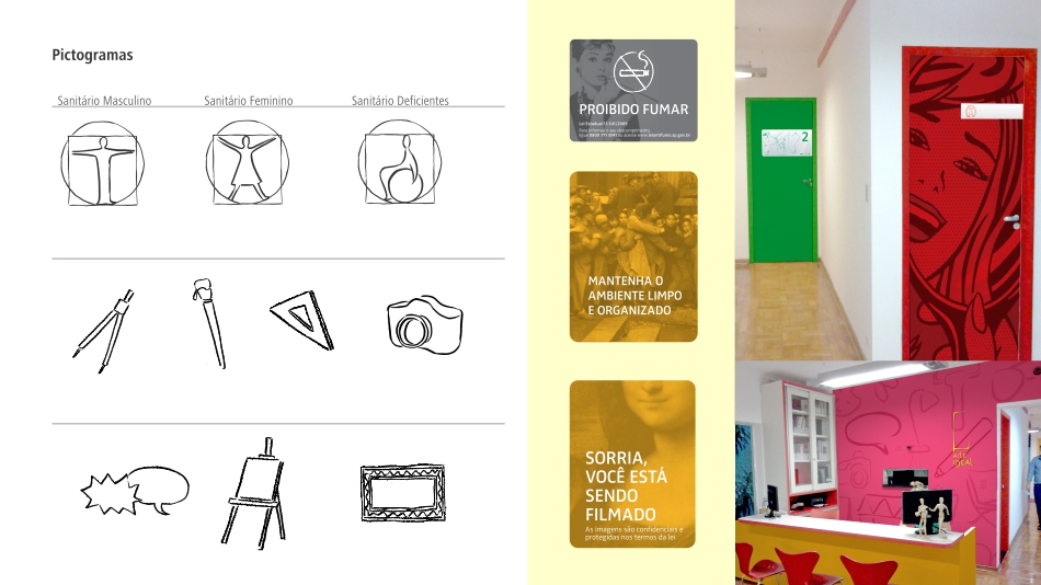 A definição estratégica do universo verbal e fotográfico da marca, unidos à utilização de cores primárias, formas gestuais e um pensamento criativo na ambientação, compõe um sistema de identidade que materializa a personalidade da marca e envolve os públicos em seu universo.